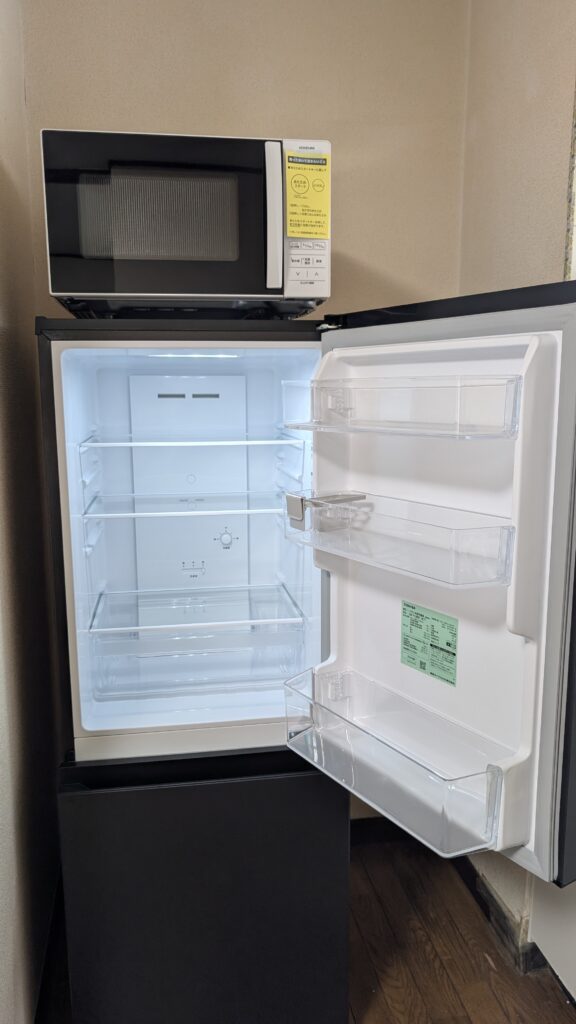 今日、冷蔵庫と電子レンジが配達された。これらは先日ドコモガラケーからソフトバンクiPhoneにm日、冷蔵庫と電子レンジが配達された。これらは先日ドコモガラケーからソフトバンクiPhoneにmnpしたときにもらったクーポンとヨドバシポイントの合計8万円分で購入したものだ。近所に業務スーパーがあるので事務所で生活できてしまう感じだ。