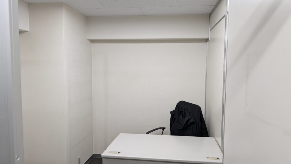 部屋自体は広くなかったが会社を登記する場所として費用を取られない事務所だったのでスタートアップ企業には良いところだった。背景がきれいで照明が安定化電源のLEDだったからYouTube動画もここで撮ったし。電気代もWi-Fiも家賃込みなので使いたい放題。24時間365日使えて、冷暖房も完備。トイレ、台所、冷蔵庫、湯沸かしポット、スキャナは共同使用だったが問題なかった。プリンターは使った分だけ課金。